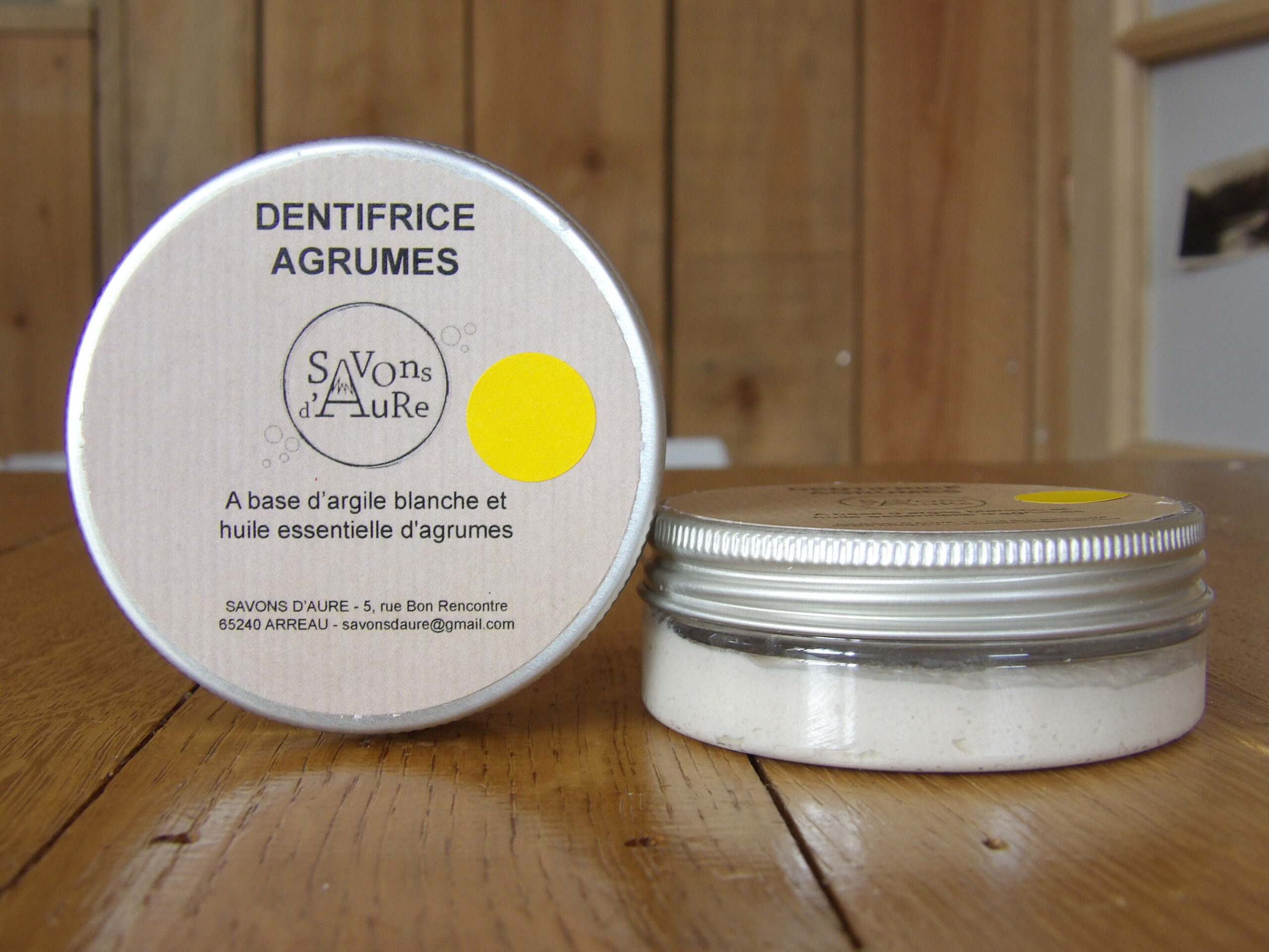Dentifrice solide à base d’argile blanche et d’huiles essentielles de Lemongrass et d’Orange Douce.