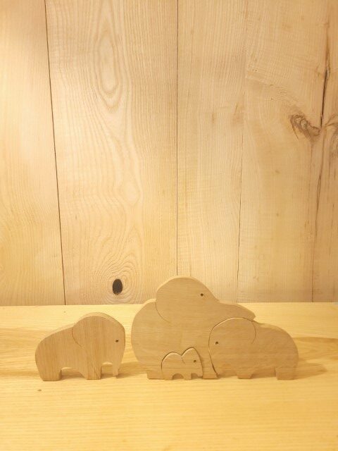 Famille éléphants en bois massif.