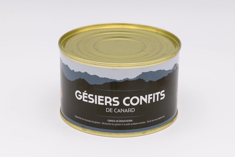 Ingrédients : 60% gésiers de canard (origine France), graisse de canard, sel, poivre.