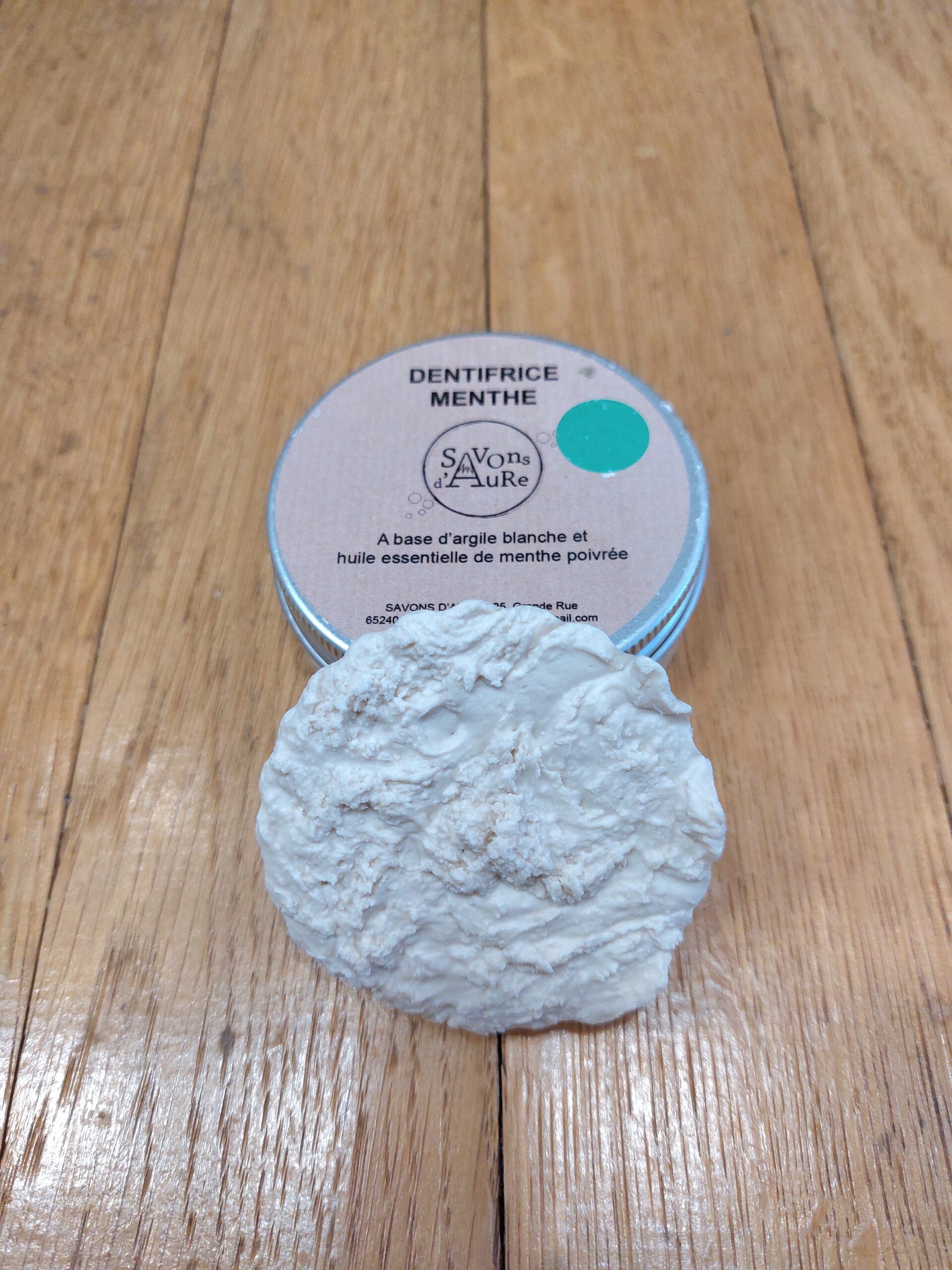 Palet de dentifrice solide à base d’argile blanche et d’huile essentielle de menthe poivrée. A déposer dans le pot initial.
